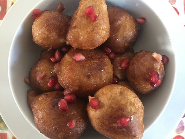 Start adding spoonfuls of the batter to the oil and avoid overcrowding the fryer/pan. The traditional way is actually to use your hands to scoop the mixture in, forming round ball shapes. Give it a go! It took me a while to master the technique and my first few attempts looked more like disfigured ping-pong balls than anything else, but I got there in the end.
