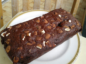 Pour into a loaf tin lined with greaseproof paper and top with a few chopped almonds to make it look all rustic and home-made.