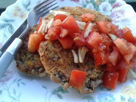 BEANS & PLANTAIN CAKES WITH A TOMATO-ONION SALAD
