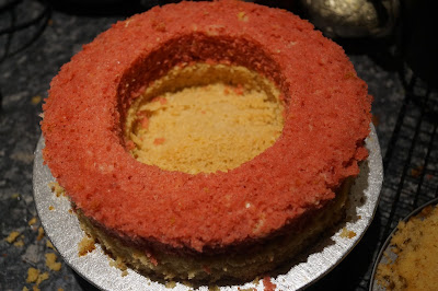 I got the idea for this cake when my sister told me that she wanted a popcorn-themed cake for her birthday this year - kinda like the tie-dye cake with popcorn frosting I made for my mum back in April. As I'm not a big fan of making the same things twice, I decided to create a variation and reverse the structure, which led to this popcorn-filled cake.