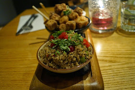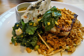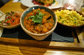 Lovely, chilled atmosphere. Very fancy indeed. I hear Madonna, Gwyneth Paltrow and Stella McCartney are fans of the place. I can understand why. My starter consisted of plantain fritters filled with vegetables, served with shaved fennel and pomegranate in a coriander and lime dressing with blueberry and chipotle coulis. Like I said, fancy...