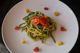 CUCUMBER NOODLES WITH AVOCADO-PEPPER SAUCE (RAW)