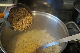 Below is my technique for combining brown rice, quinoa and bulgur wheat...