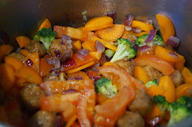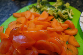 Add the rest of the chopped vegetables (carrots, broccoli, potatoes and tomato).