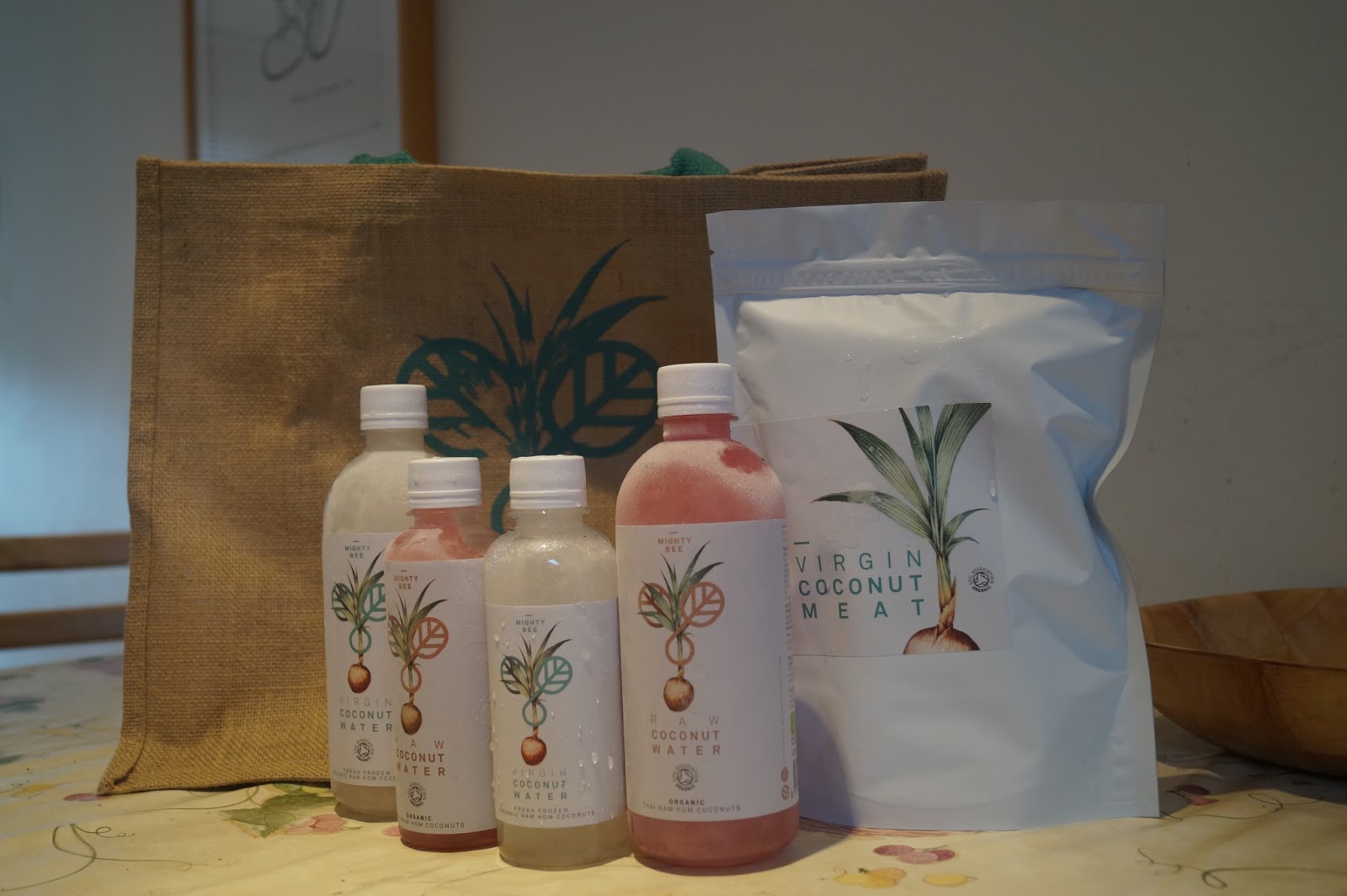 So I'm sure it must come as no surprise that I instantly took to the stash of coconut products sent to me by the company MightyBee. Included in their branded, reusable bag was their Virgin Coconut Meat in a resealable pouch, along with two sizes each (235ml and 473ml) of their Raw Coconut Water and Virgin Coconut Water. I was impressed with the clean, beautiful branding and packaging, which, in my opinion, do well to reflect the stated values of the company.