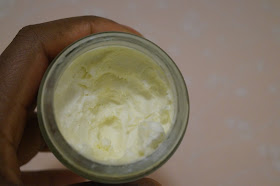 The shea butter is whipped, and what this means is that you're left with a creamy, spreadable, mousse-like consistency. A little goes a long way and you only need a small amount to moisturise in order to achieve super soft skin. At £6 for a 120ml jar I think it's a steal, especially as it will last you a long time.